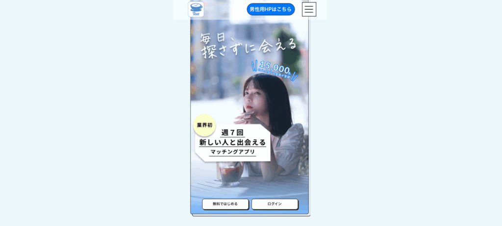 | Teee | ○(一部無料利用可) | 約3,900円〜 | メッセージ不要、即デートにつながるシンプル設計 |