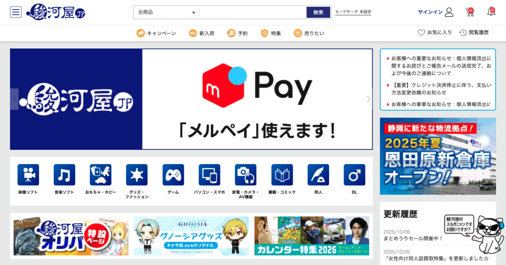 駿河屋はサブカル系アイテムの大手で、トレカ市場でも高評価。