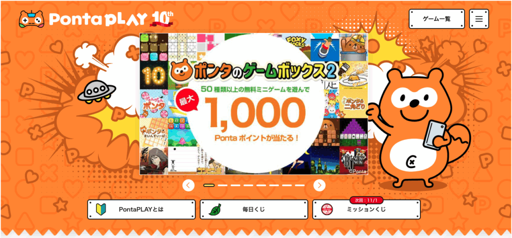 「Ponta PLAY」は、Pontaポイントをお得に貯められる無料ゲームサイト。