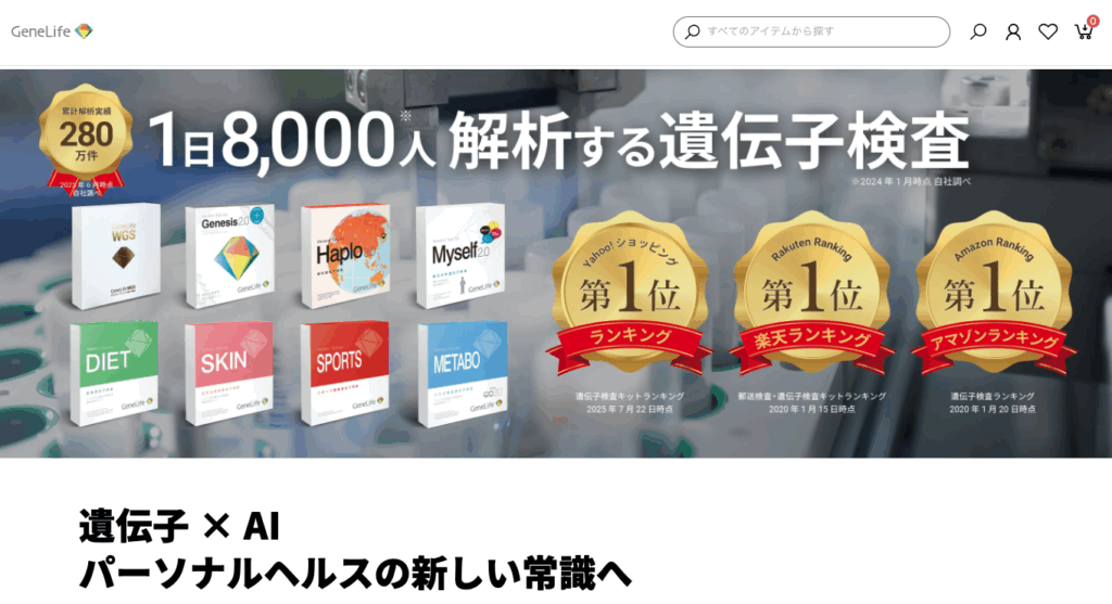 「GeneLife」は、総合型の遺伝子検査キットで、体質・肌質・筋肉の付きやすさ・代謝タイプなどに関する専用コンテンツが充実。