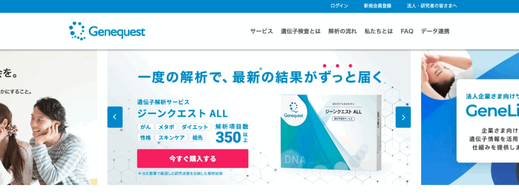 「GeneQuest(ジーンクエスト)」は、研究機関や大学と連携し、科学的なエビデンスに基づいた解析を行う本格派の遺伝子検査サービス。