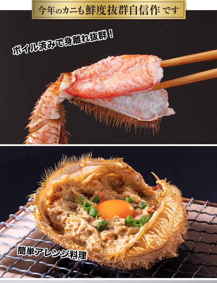 (※この部分で「実はこのカニ、人気通販サイト“かに本舗”のもの」と自然に紹介)