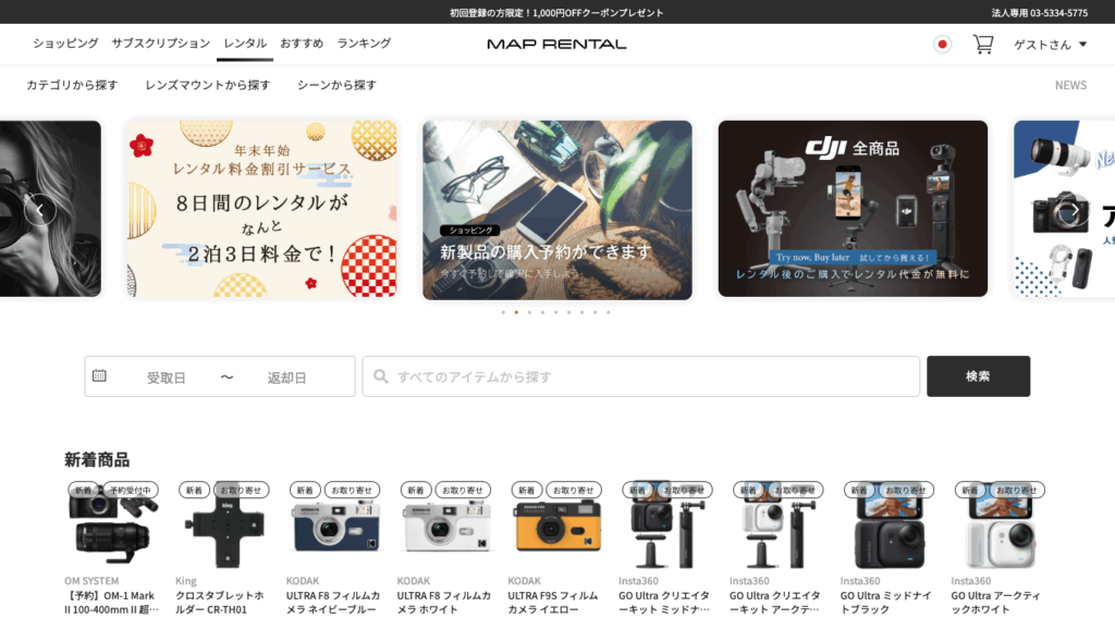 「MAP RENTAL(マップレンタル)」は、東京・秋葉原に本店を構える老舗カメラショップ「マップカメラ」が運営する本格派レンタルサービス。