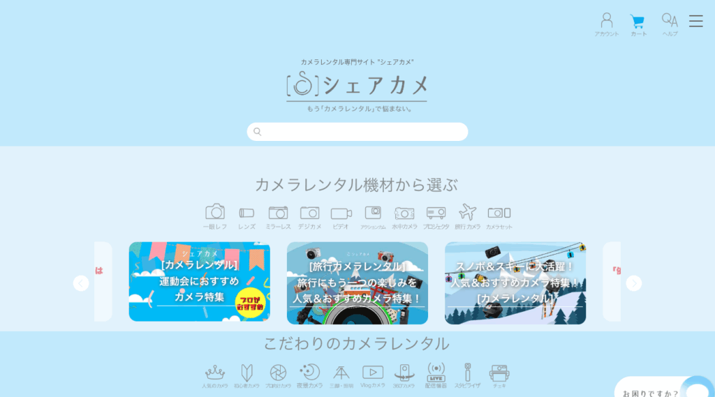 「シェアカメ(share cam)」は、最短翌日に届くスピード配送と無料往復送料が魅力のカメラレンタルサービス。