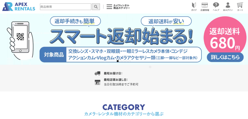中でも「SONY αシリーズ」や「GoPro」などの人気カメラが充実しており、最短翌日配送&往復送料無料で利用できます。