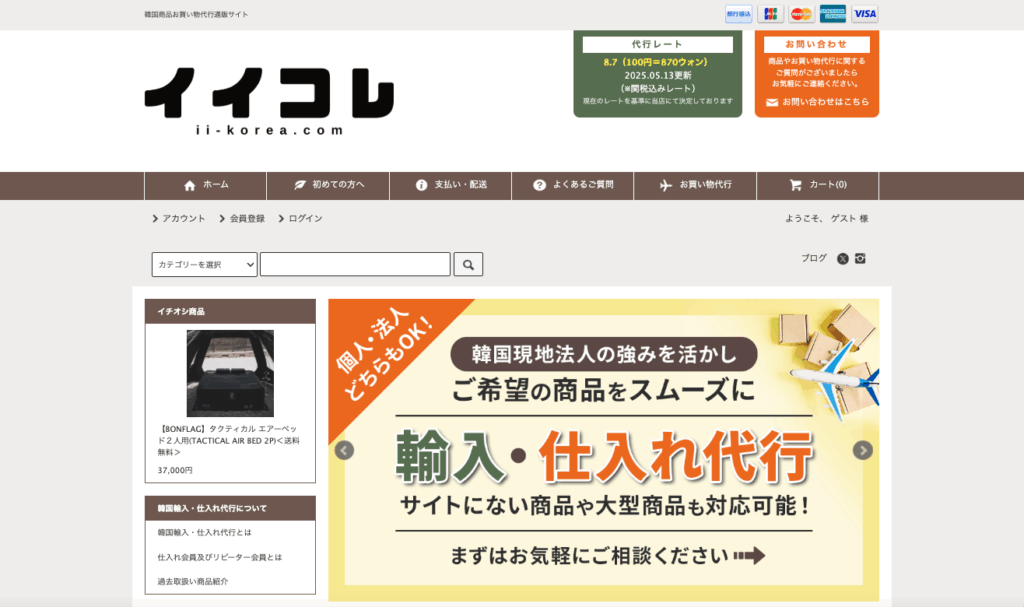 料金の目安:100万ウォン未満は1,100円(税込)、以上は商品代の8%。