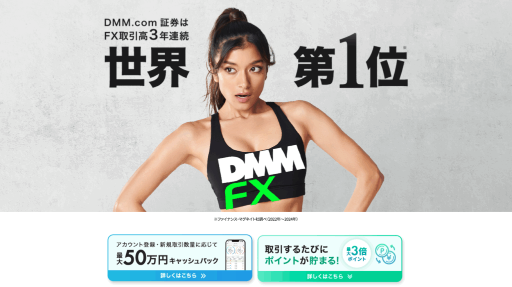 DMM.com証券」は、国内FX取引高トップクラスの人気ネット証券。