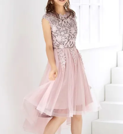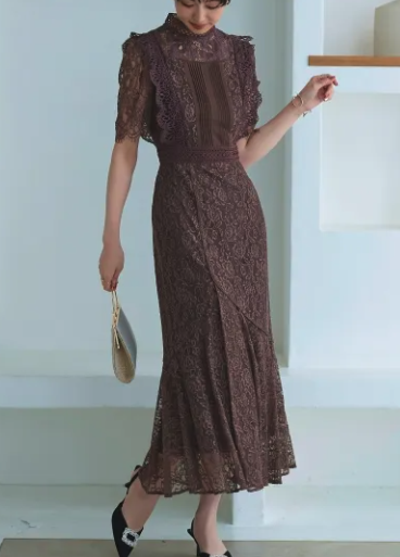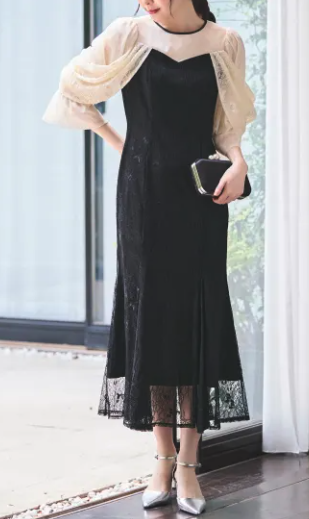 レースのあしらいや袖ありデザインを取り入れて、可愛らしさと品を両立させるのがおすすめ。