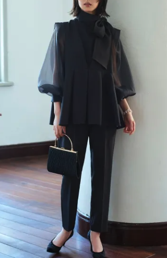 全身真っ黒 → 不祝儀を連想させるため、黒を選ぶなら小物や羽織で明るさを加えるべきです。