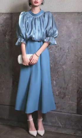 ロング丈、落ち着いたトーン(ピンクベージュ・深グリーンなど)が似合います。
