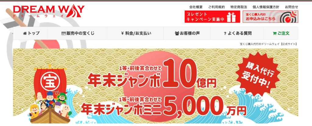 | ドリームウェイ | 2,500〜5,000円前後(購入枚数により変動) | 500〜1,000円程度 | 西銀座チャンスセンター | 法人運営で信頼性が高い。窓口・購入日の指定可能。ギフト配送対応。 |