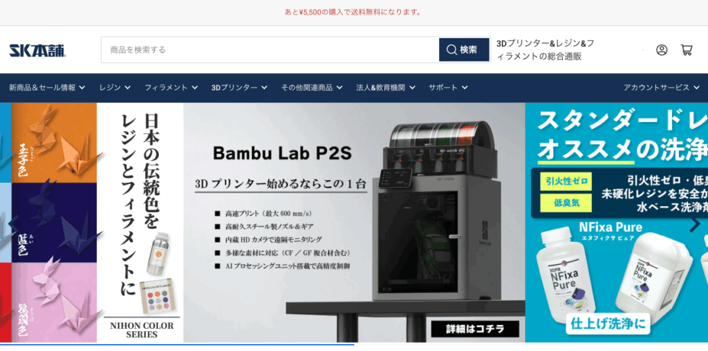 特に SK本舗 は、初めて3Dプリンターを買う人にとって頼れる存在です。