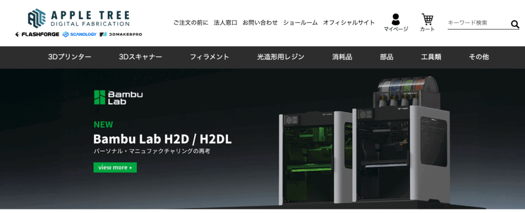 APPLE TREEは、高品質なフィラメント・樹脂・パーツ類が揃う3Dプリンター材料専門店。