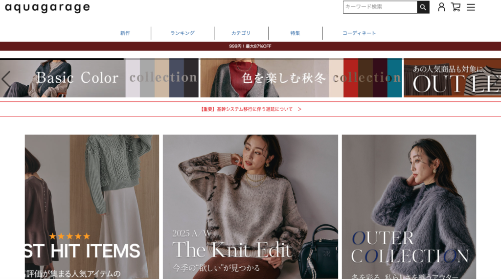 aquagarageは、30代・40代女性からの支持が非常に高いプチプラ通販サイトです。