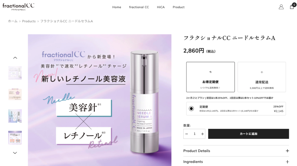 | fractionalCC ニードルセラムA | なじみが早い | ★★★☆☆ | 普通肌・混合肌 | レチノール系ケアを取り入れたい人 |