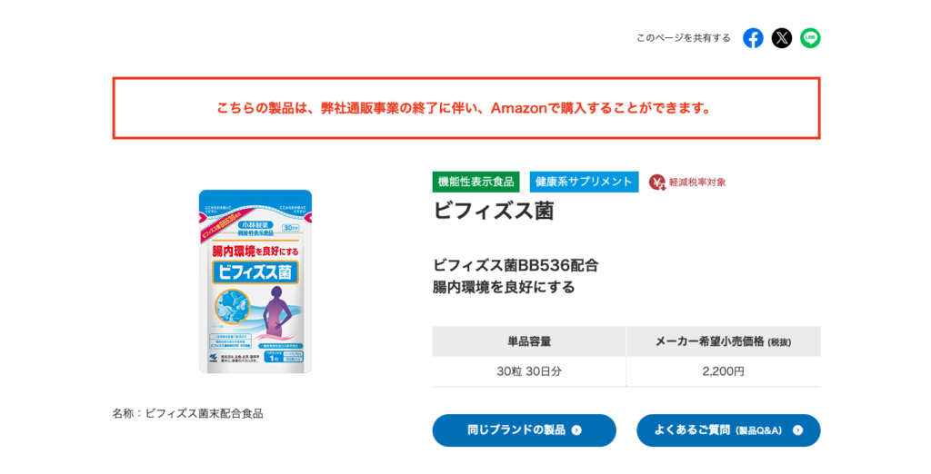小林製薬 ビフィズス菌(BB536配合・機能性表示食品)