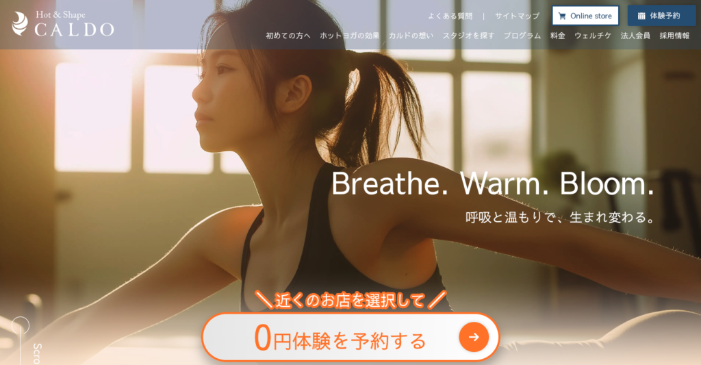 全国展開の大手ホットヨガスタジオ。初心者向けプログラムが豊富で、インストラクターのサポートも手厚いのが魅力。