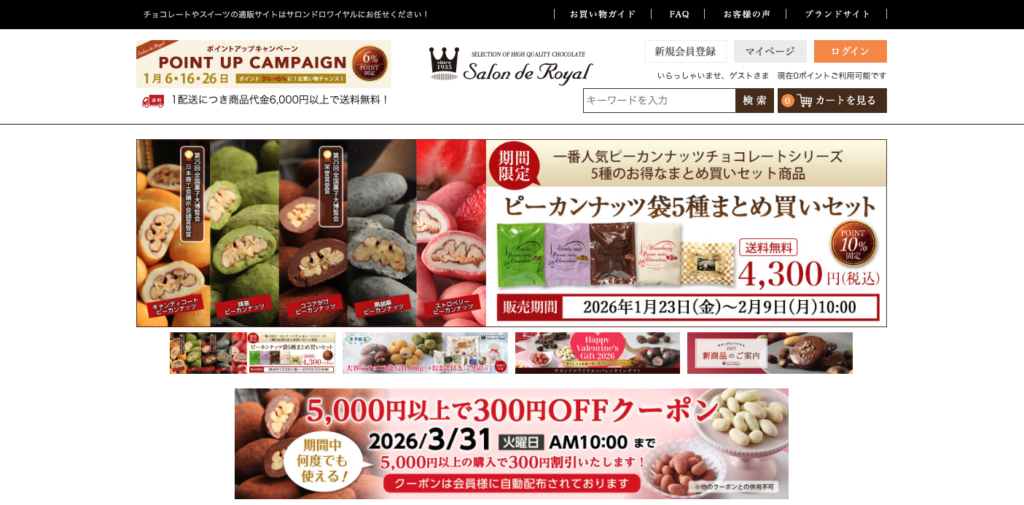 日本国内でも高評価のブランド・限定コレクションを取り扱い、バレンタイン限定ギフトやボックスセットが人気です。