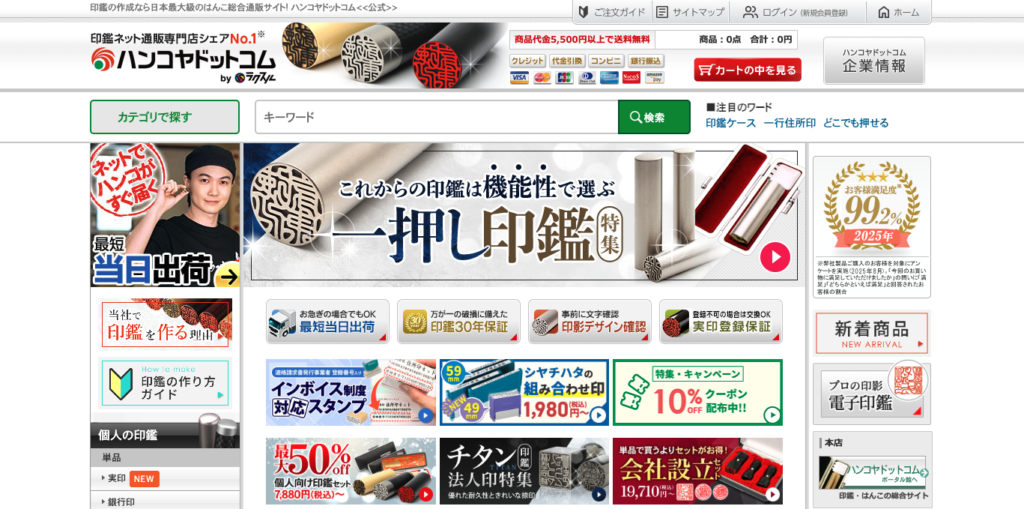 印鑑通販の老舗で、サイトの使いやすさ・サポート体制が充実。