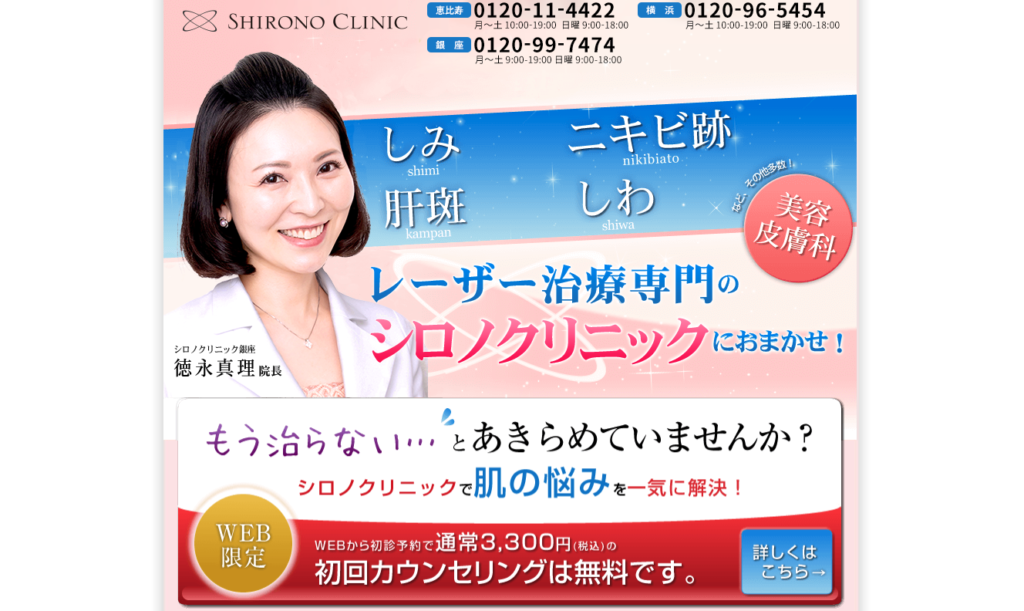 1. シロノクリニック(★おすすめ1位:レーザー治療のパイオニア!)