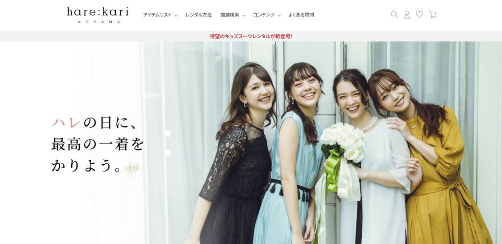 hare:kariは「洋服の青山」が運営しており、フォーマルウェアのプロが厳選した高品質で上品なドレスが揃っているのが特徴です。