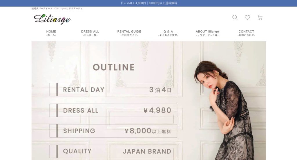 | 最安料金(ドレス単品) | 約4,980円〜 |