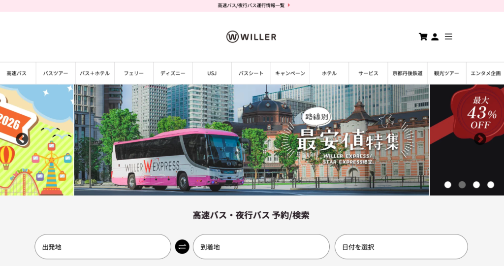 WILLER TRAVELは、ピンクのバスでお馴染みの自社便を中心に、快適性にこだわる方におすすめです。