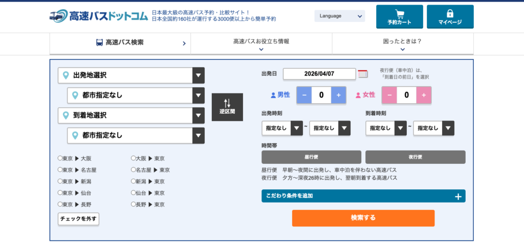 高速バス・夜行バス・深夜バスの予約サイトは、安さだけでなく検索のしやすさも重要です。