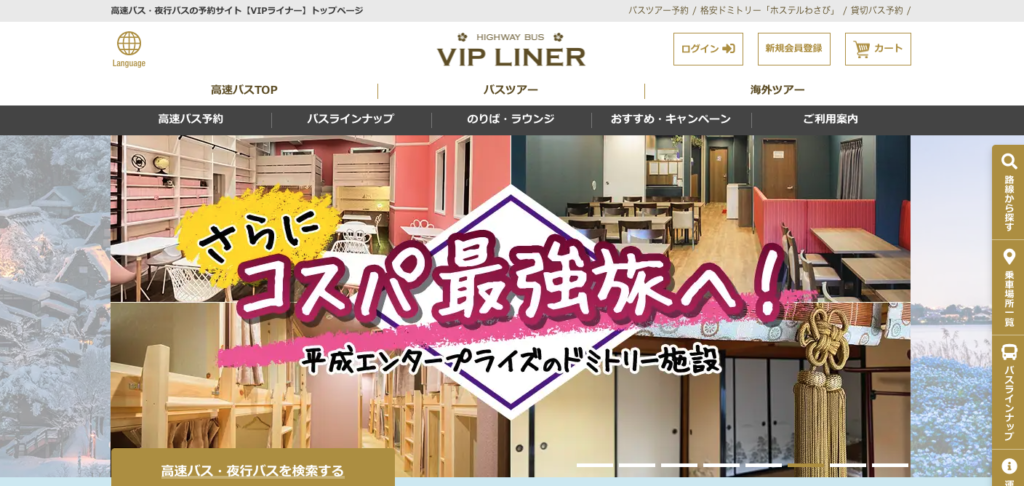 | 6位 | VIPライナー | 自社路線中心 | 基本可能 | VIPポイント | クレカ・PayPay等 | 公式サイトはこちら |