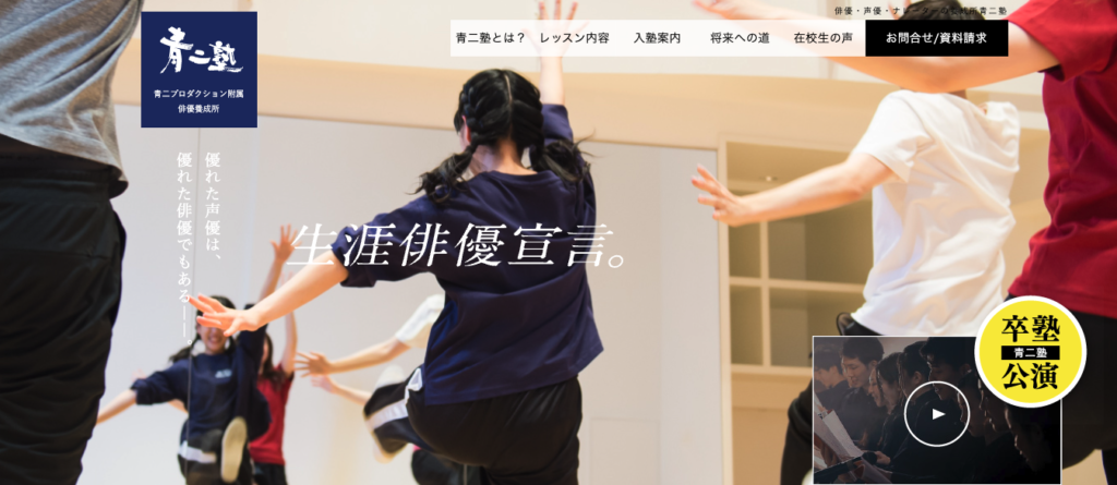青二塾青二プロダクションへの高い所属率青二プロダクション直結週5日(東京校)等約110万円