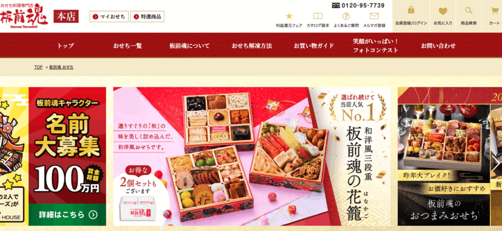 | 3位 | 板前魂 | コスパ最強のおせちブランド。 品数も多く家族向けに人気。冷凍技術も高く安定した味。 |