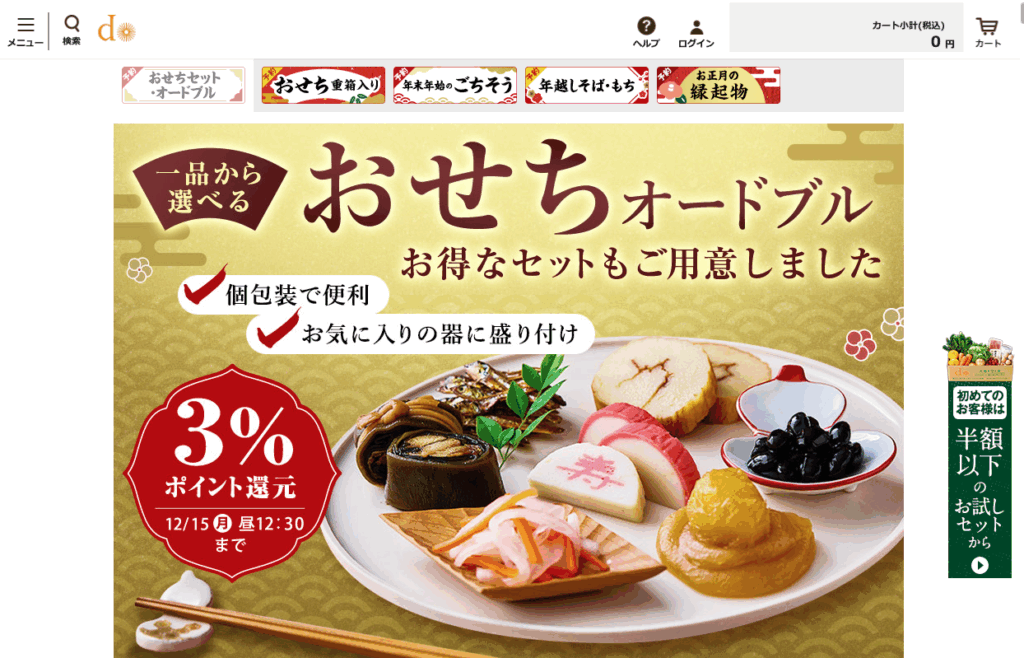 おせち通販デビューにも、自宅用にも、贈り物にもぴったり。