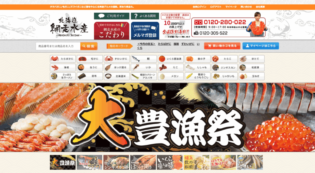 タラバ・ズワイ・毛ガニと種類も豊富で、訳あり商品も多く扱っており、「味は一級品なのに安い」のが魅力です。